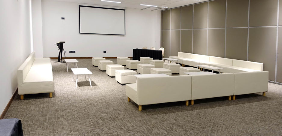Salas totalmente versátiles de 224 metros cuadrados, todas divisibles a la mitad para todo tipo de reuniones. Ideales para sesiones paralelas de congresos, pequeñas conferencias, presentaciones, almuerzos, cenas, cocktails, eventos sociales en general, conferencias de prensa, presentaciones de productos, reuniones corporativas y capacitaciones empresariales. Tabla de capacidades de salas aquí!